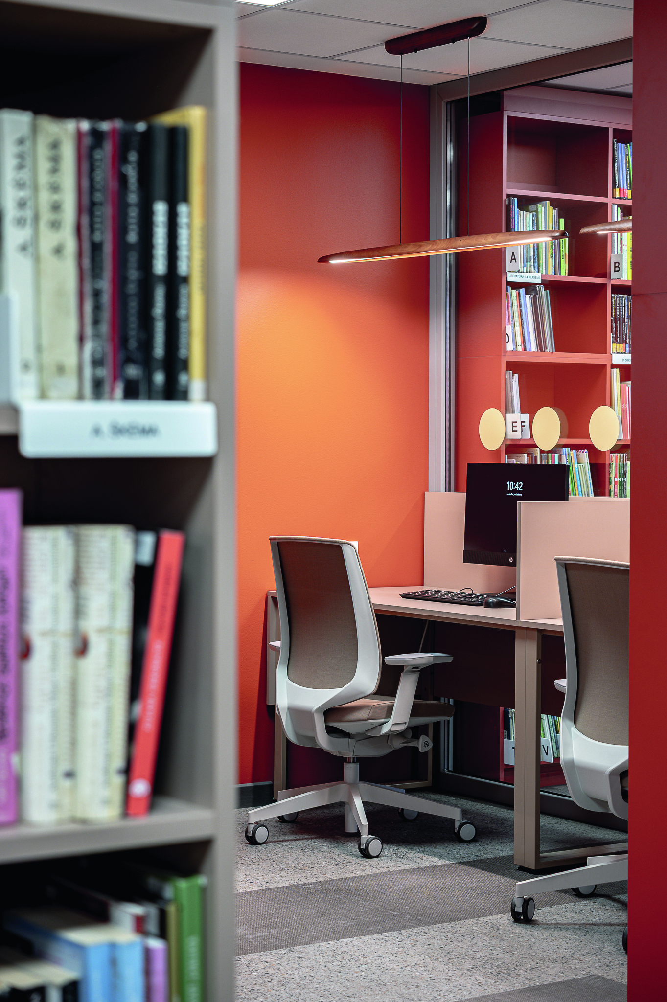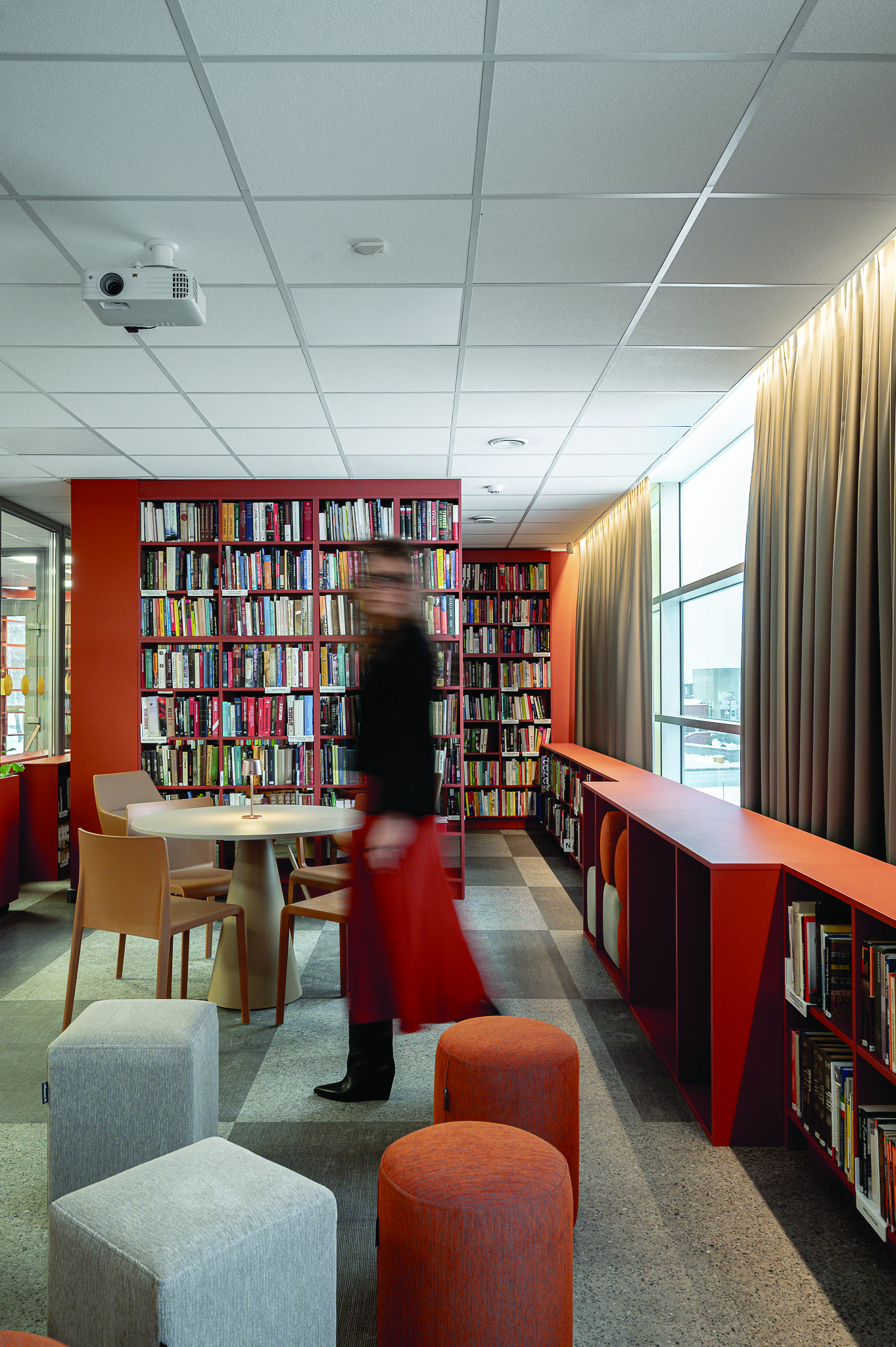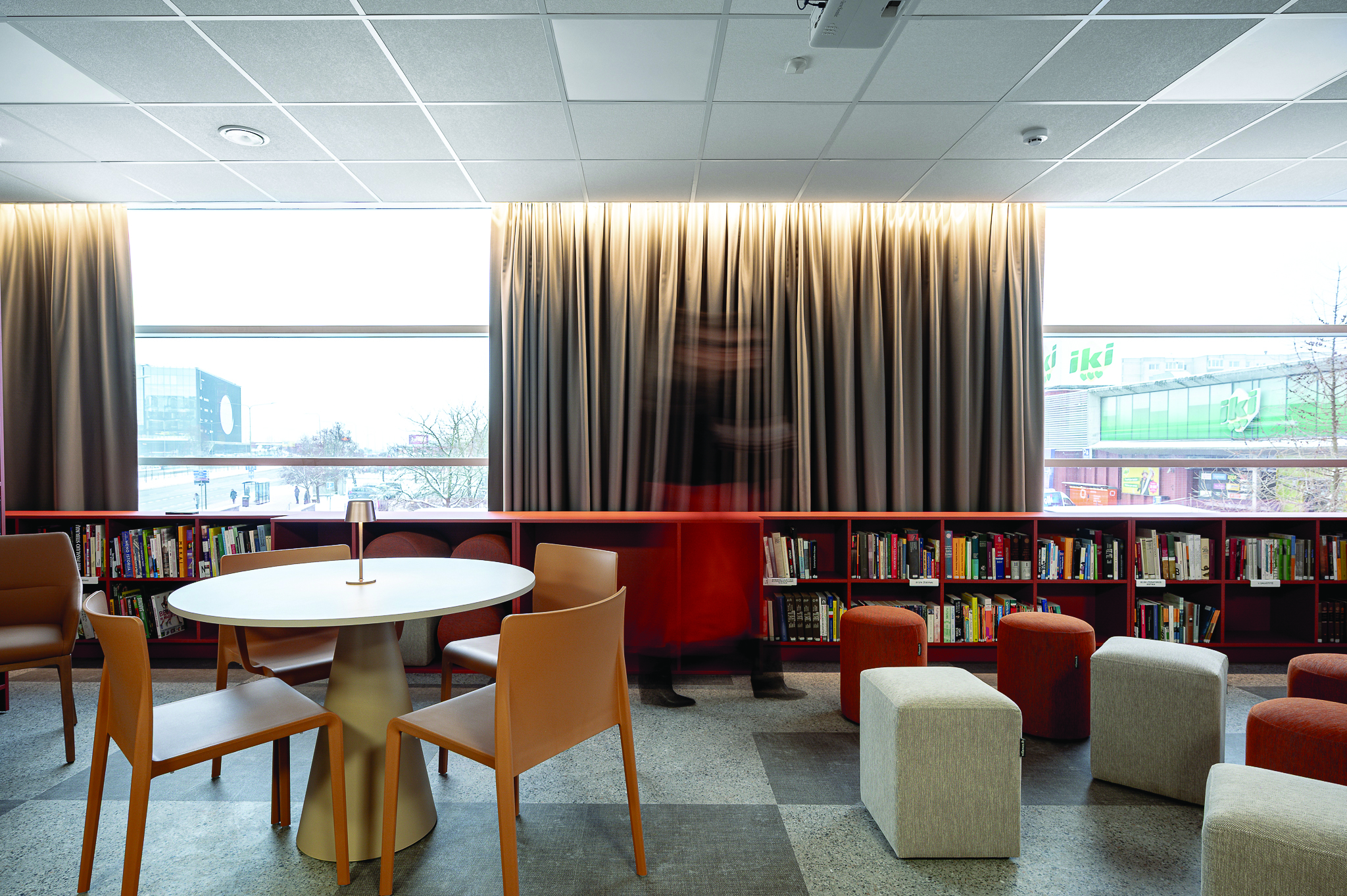 Bibliotekoje šviesos kontrolė ne mažiau svarbi nei knygų lentynos ar patogūs baldai, o susikaupimas ir tyla – vienos didžiausių vertybių, todėl užuolaidos čia atlieka anaiptol ne dekoratyvinį vaidmenį.