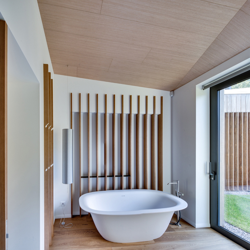 „Su „Arches“ architektais dirbame jau ne pirmus metus, pažįstame vieni kitus, mokame suprasti jų norus, o jie žino mūsų galimybes. Darbus pradėjome nuo pokalbio, paskui gaminome spalvinius pavyzdžius, siekėme „pataikyti“ tiesiai į architektų vizijos dešimtuką“, – darbo aspektus prisimena P. Markauskas ir teigia, kad projekte buvo malonu dirbti, nes tiek architektai, tiek užsakovai viso proceso metu palaikė inovatyvias, netradicines idėjas. Viena jų – sprendimas medines grindis sudėti net į vonios kambarius! „Nors medines grindis vonios kambariuose montuojame daugiau nei 10 metų, su tokiu sprendimu sutinka tik pažangūs architektai ir užsakovai. Daugelis mano, kad medis netinkamas vonioje, neaišku, kaip reaguos į vandenį bei drėgmę. Tačiau realybė visai kita. Kartą į vonią susidėję medį, klientai niekada nebegrįžta prie plytelių“, – sako specialistas.