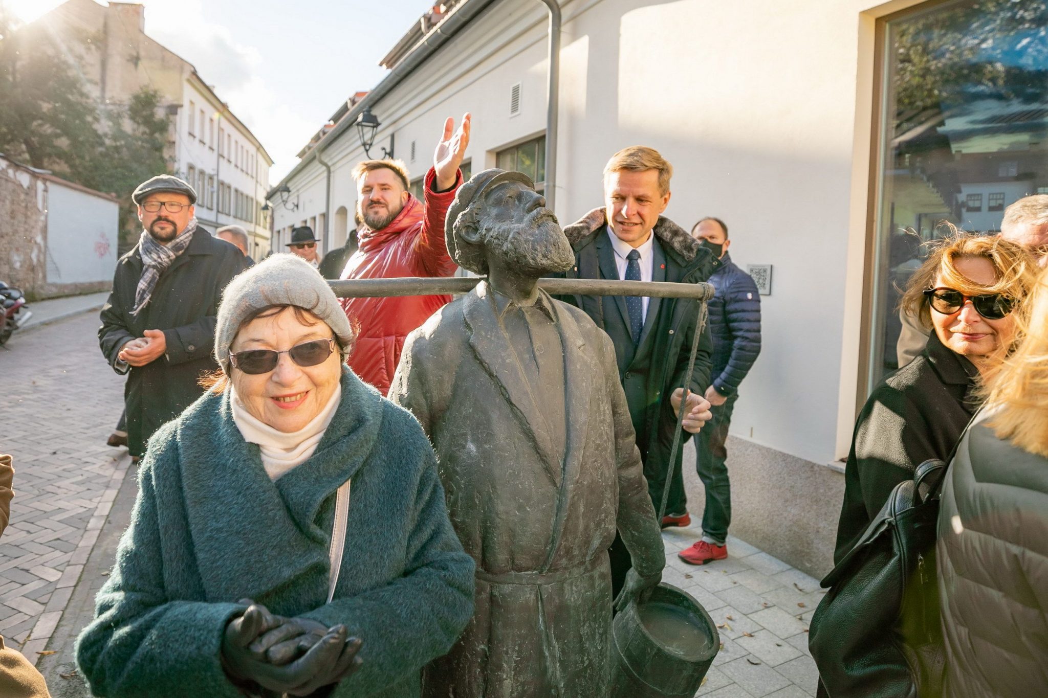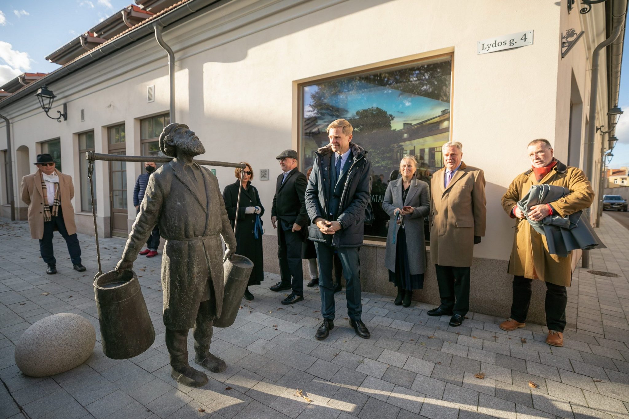 Atidengta skulptūra „Vandens nešėjas“ simbolizuoja žydą vandens nešėją, kuris, manoma, buvo dažnai pastebimas Vilniaus senamiestyje. Šio darbo ėmėsi patys vargingiausieji – jie semdavo vandenį iš upės ir pristatydavo jį į senamiesčio parduotuves ir dirbtuves, kuriose nebuvo tekančio vandens.