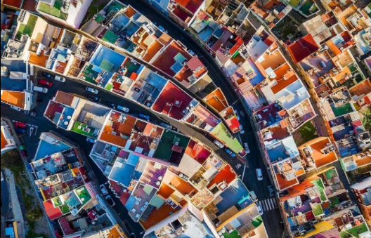 Spalvingoji architektūra: kaip atrodo ryškiaspalviai miestai iš viršaus
