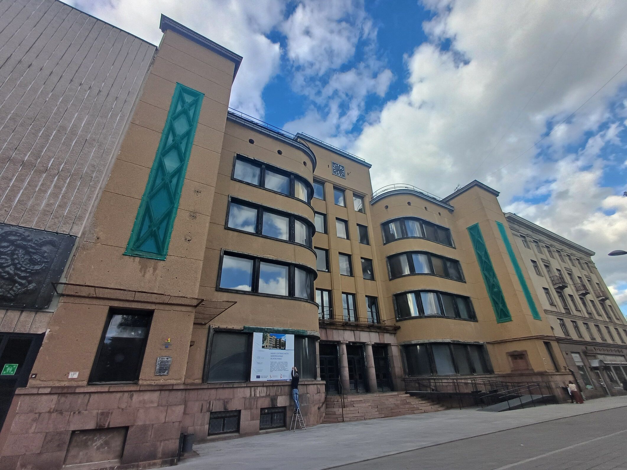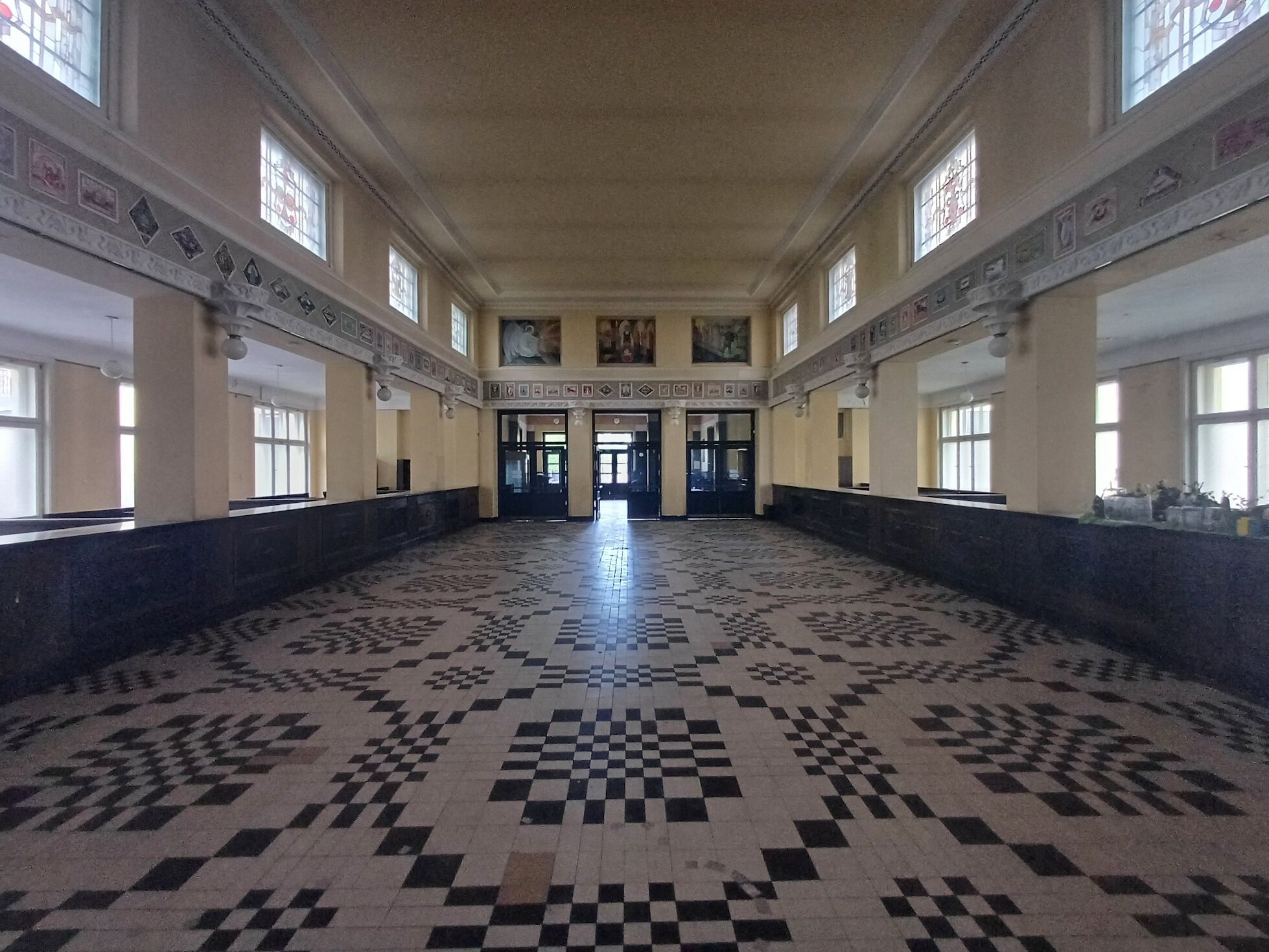Stipriausią įspūdį kuria solidūs fasadai su granito portalais, lenkti vitrininiai langai, erdvi, tautinio meno bruožų turinti operacijų salė, kokybiškos medžiagos bei interjero detalės.