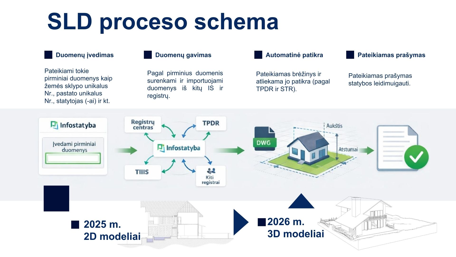 Statybą leidžiančių dokumentų (SLD) išdavimas Lietuvoje pradės naują – skaitmeninį – etapą. Aplinkos ministras patvirtino Kompleksinio teritorijų planavimo dokumentų rengimo taisyklių pakeitimus, kurie leis kaupti pilnai skaitmeninius duomenis bei juos naudoti patikrose, automatizuoti procesus ir sukurti skaitmeninis modelius atlikti duomenų patikrai. Procesas užtikrins greitesnį SLD išdavimą, leis išvengti žmogiškųjų klaidų, užtikrins vienodus vertinimo kriterijus, spartins procesus.