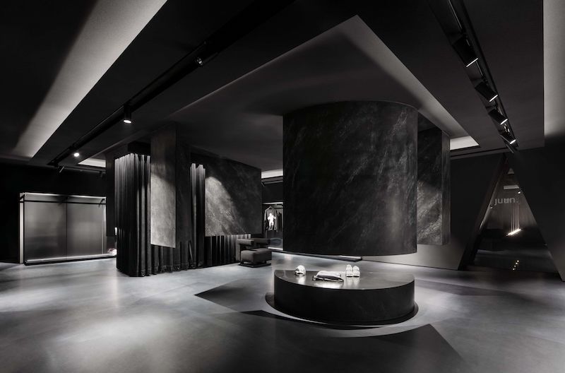 Korėjos architektų biuras WGNB sukūrė neįprastą mados prekių ženklo „Juun.J“ parduotuvę Seule. Pastatas atrodo kaip juodų geometrinių formų klasteris – griežtų formų, matinio paviršiaus. Parduotuvė su vyraujančiomis apskritimo, trikampio ir kvadrato formomis įsikūrusi juodai dekoruotame pastate, kurio dalis žiūri į dangų stačiu trikampiu stogu, nusileidžiančiu uždengti įstiklinto apskrito kiemo.