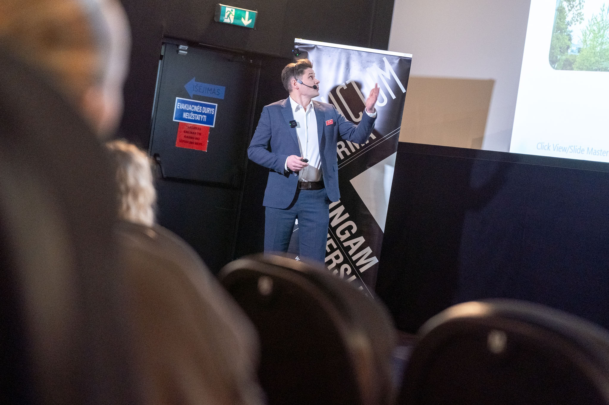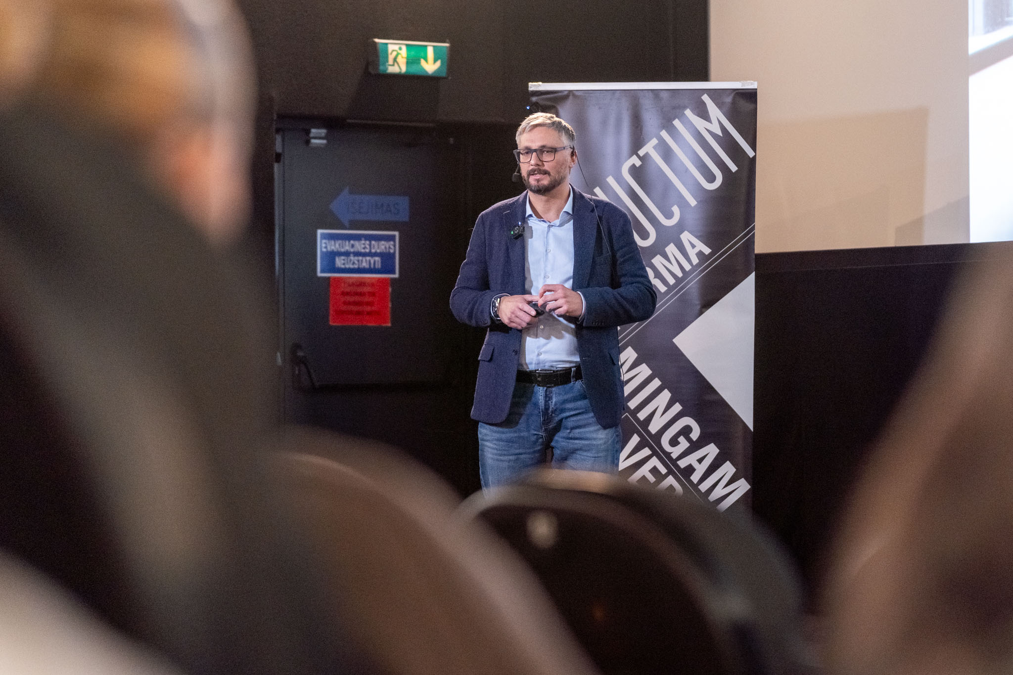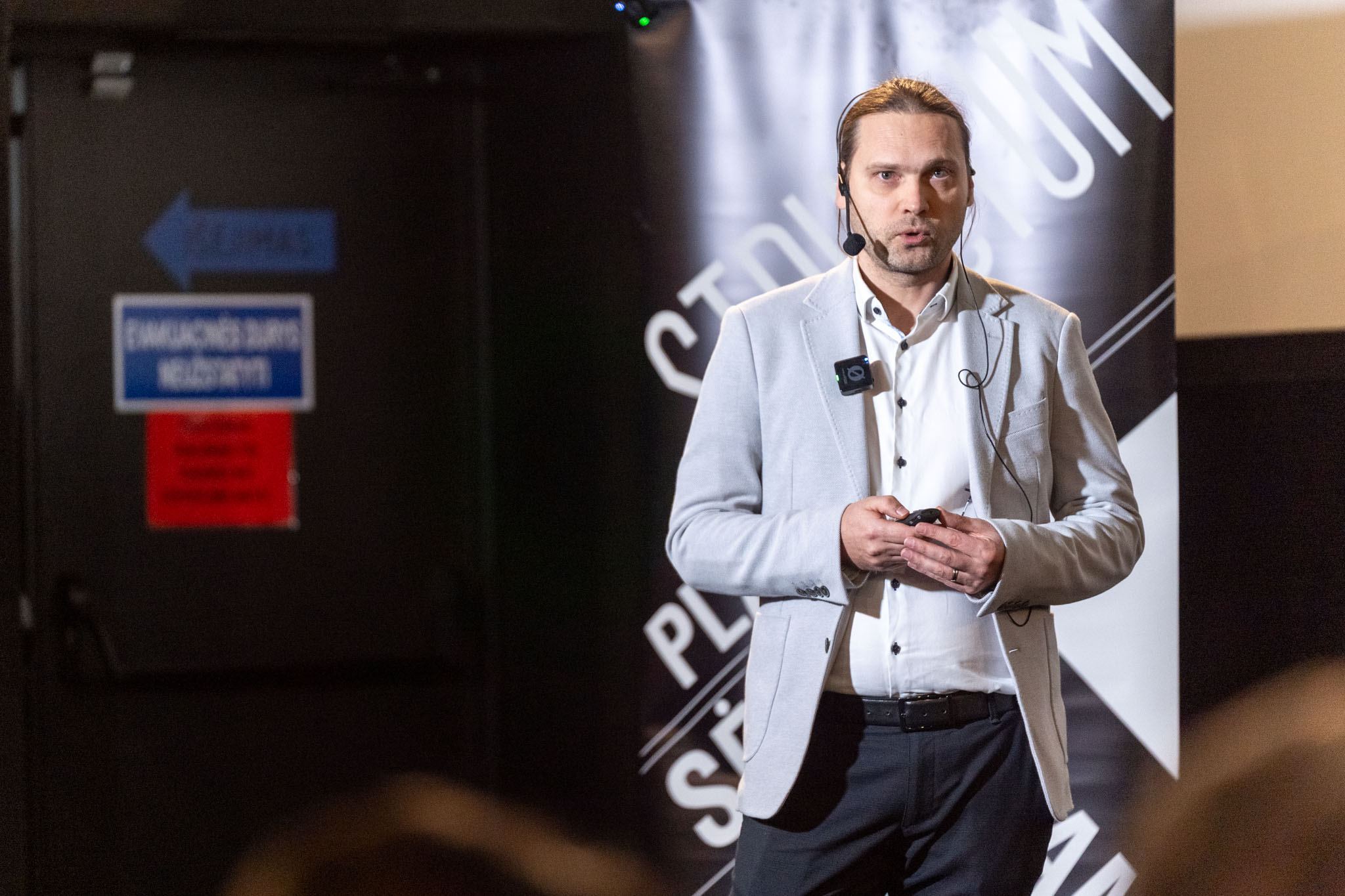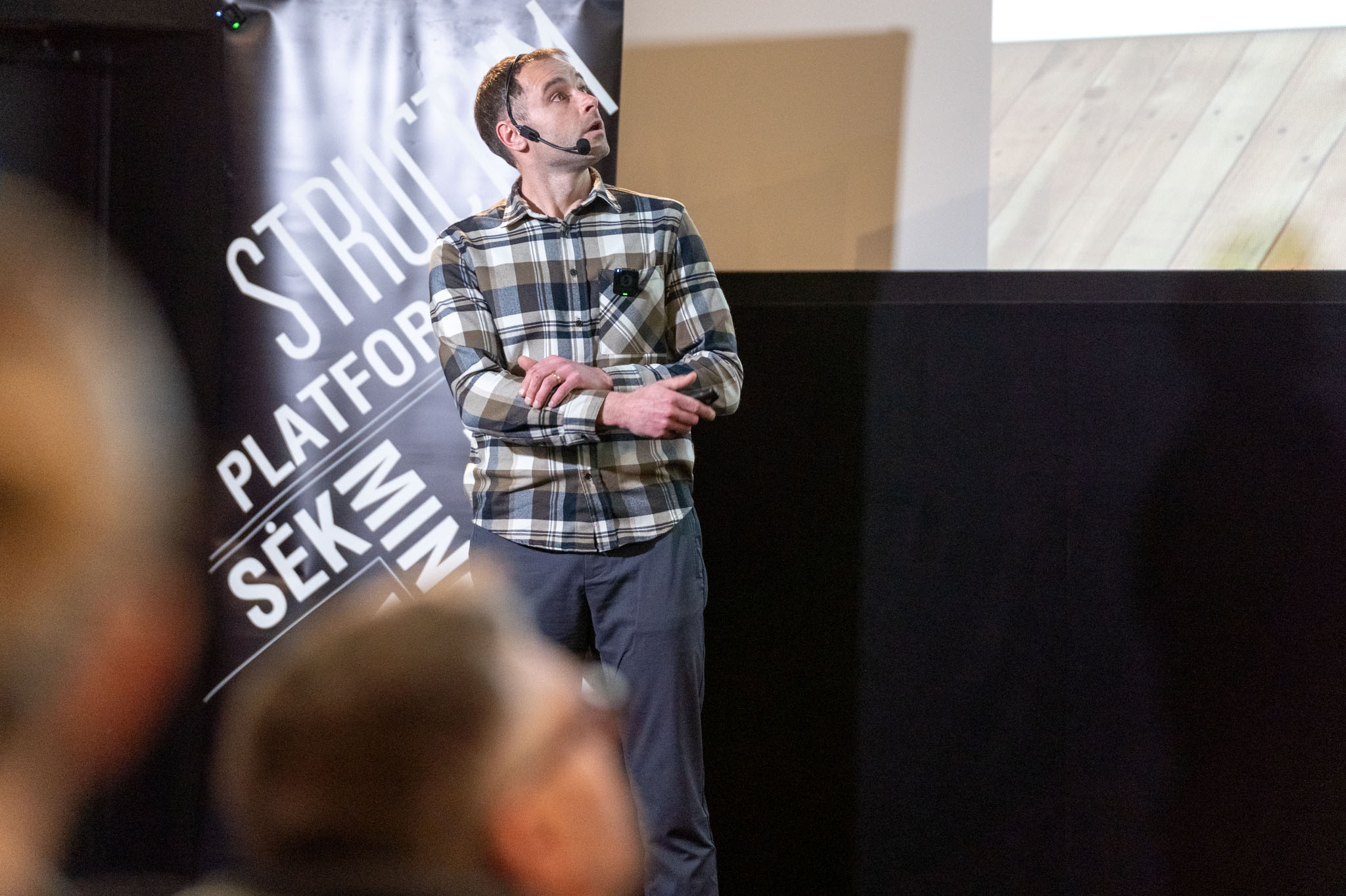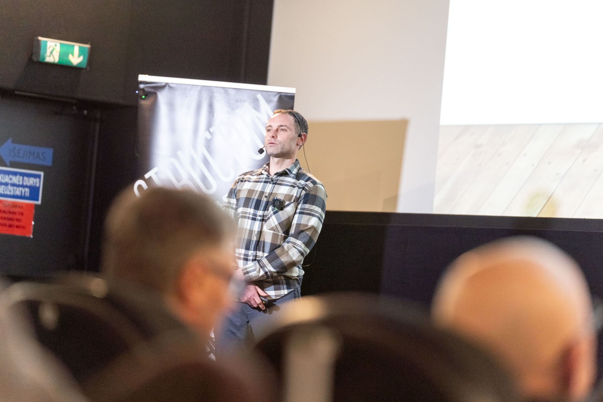 Medienos temą pratęsė Kšištof Rul, CEWOOD pardavimų ir plėtros vadovas Lietuvai, pristatęs pranešimą „Tylos architektūra: kaip medienos vilna keičia gyvenamųjų namų komfortą“. Jis akcentavo, kad komfortas prasideda nuo akustikos ir mikroklimato – dalykų, kurių dažnai nepastebime, kol jų nepritrūksta. 100 proc. ekologiška medienos vilna leidžia sprendimus numatyti dar prieš statybas, užuot juos taisius po jų. „Ar norime tokių namų kaip pas visus, ar visgi norime juose jaustis komfortiškai ir jaukiai?“ – retoriškai klausė pranešėjas, kviesdamas rinktis ne standartą, o kokybę.