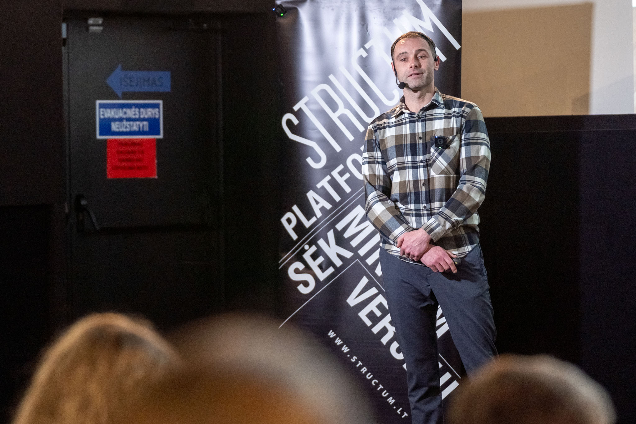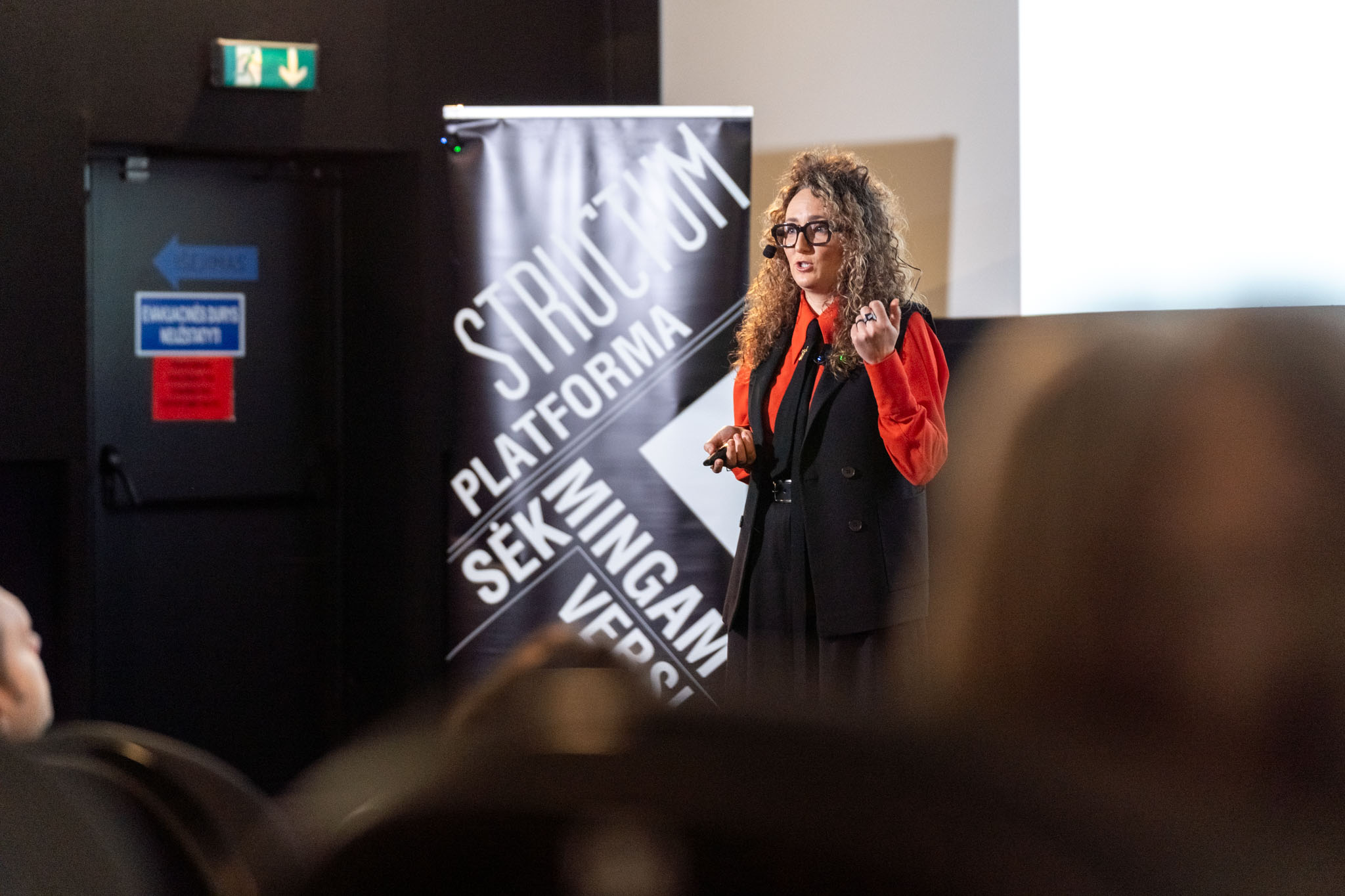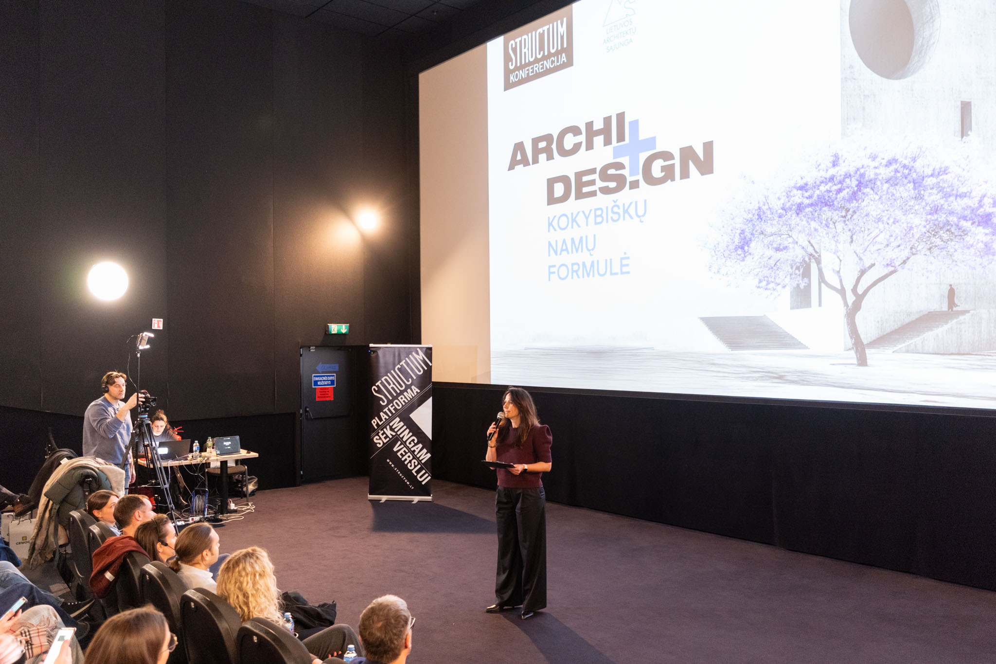 Konferenciją atidarė STRUCTUM konferencijų organizatorė Rosita Čerjezdanovė, pasveikinusi susirinkusiuosius į naują metų ciklą ir pakvietusi pažvelgti į namus kaip į gyvą organizmą, kuriame architektūra ir dizainas veikia kartu, kurdami žmogaus kasdienybės kokybę.