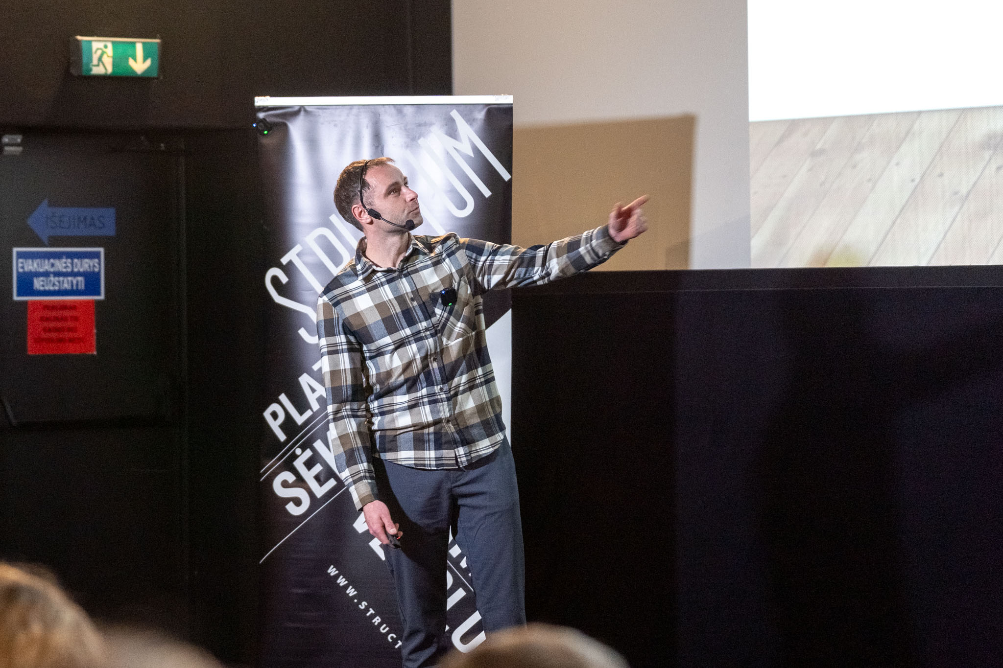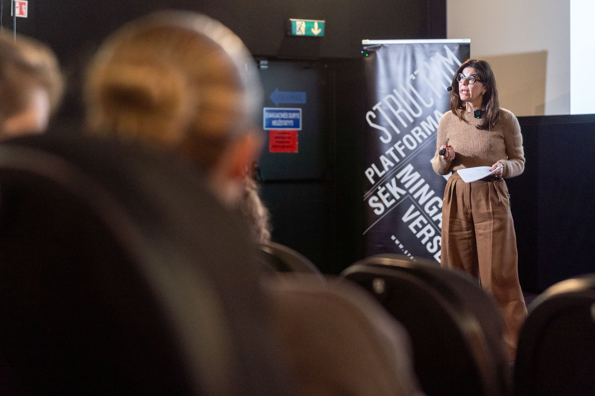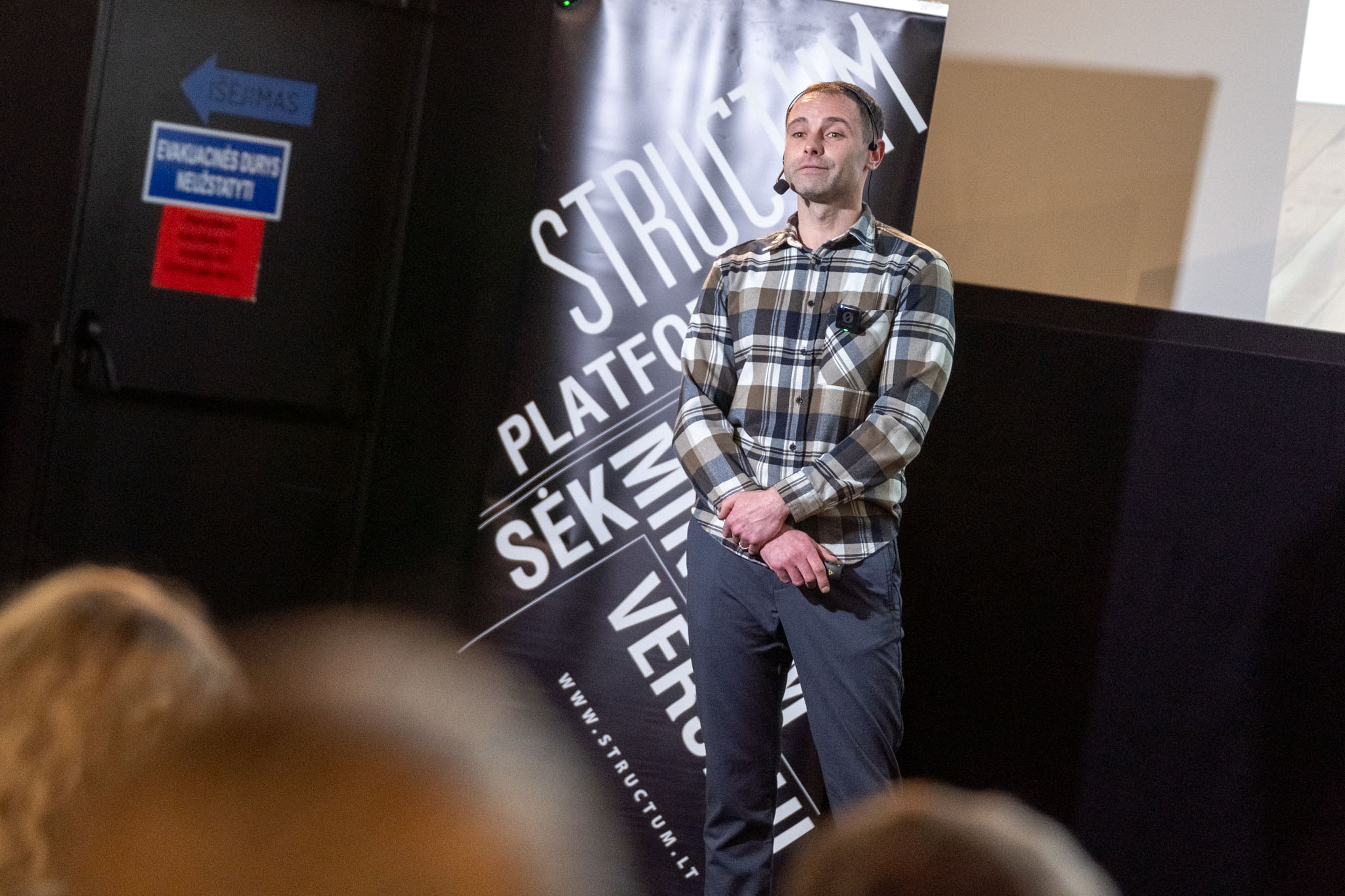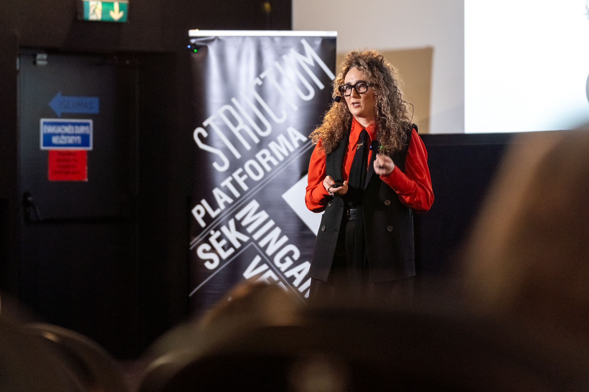 Konferenciją atidarė STRUCTUM konferencijų organizatorė Rosita Čerjezdanovė, pasveikinusi susirinkusiuosius į naują metų ciklą ir pakvietusi pažvelgti į namus kaip į gyvą organizmą, kuriame architektūra ir dizainas veikia kartu, kurdami žmogaus kasdienybės kokybę.