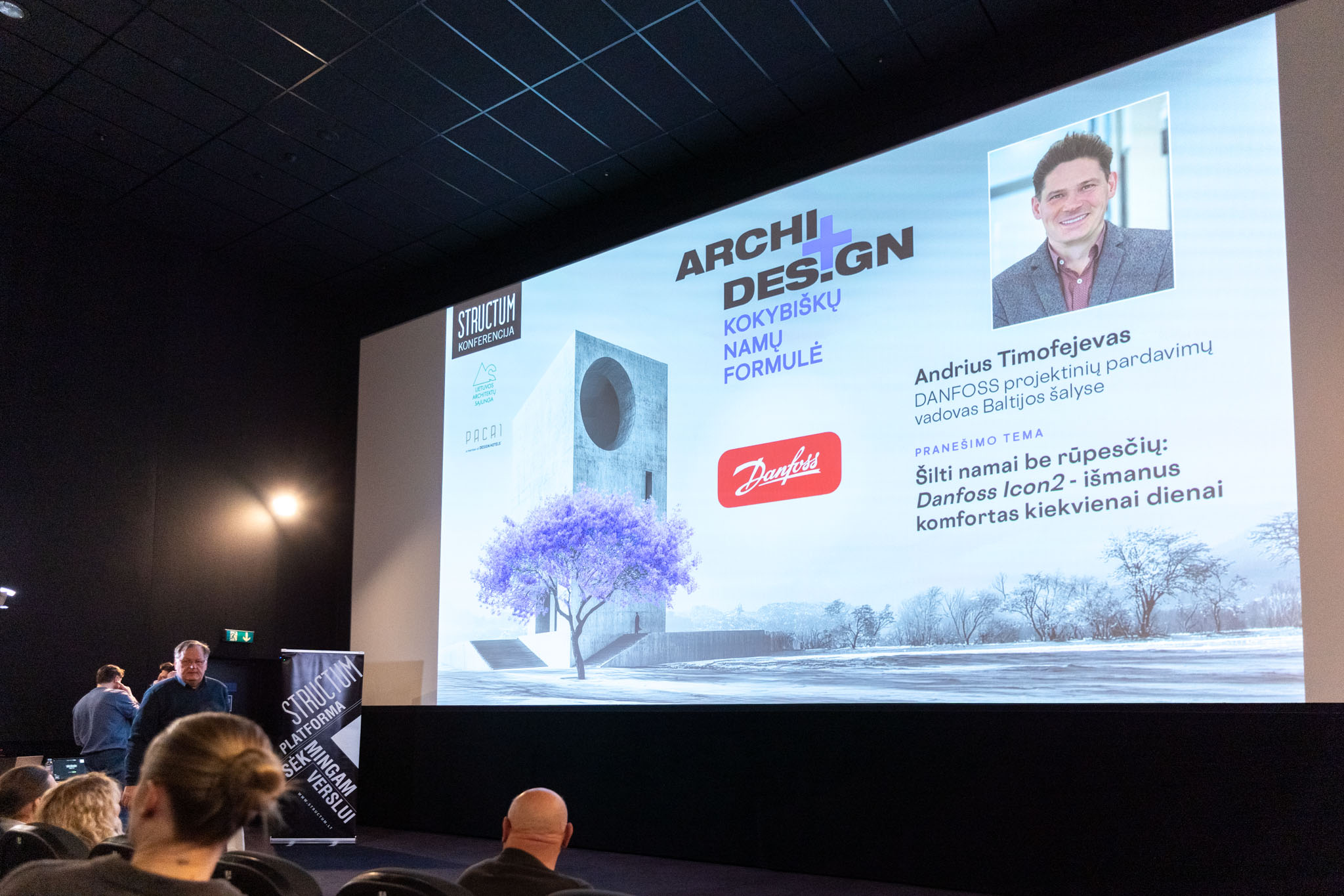 Inžinerinio komforto temą pristatė Andrius Timofejevas, DANFOSS projektinių pardavimų vadovas Baltijos šalyse. Pranešime „Šilti namai be rūpesčių: Danfoss Icon2 – išmanus komfortas kiekvienai dienai“ jis priminė, kad kokybiško būsto formulėje svarbūs ir tie elementai, kurių nematome. Be patikimų šildymo ir temperatūros valdymo sistemų pastatas liktų tik architektūrine forma. Beveik šimtmetį veikianti įmonė šiandien siūlo sprendimus, leidžiančius užtikrinti stabilų mikroklimatą ir kasdienį komfortą be papildomų rūpesčių.
