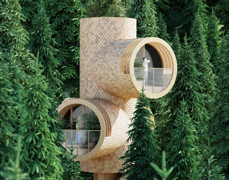Balkonus, iš kurių suformuotos laiptų sistemos vietoje fasado „L’Arbre Blanc“ („Baltas medis“) dangoraižyje suprojektavo Nicolas Laisné, Dimitri Roussel ir „OXO…