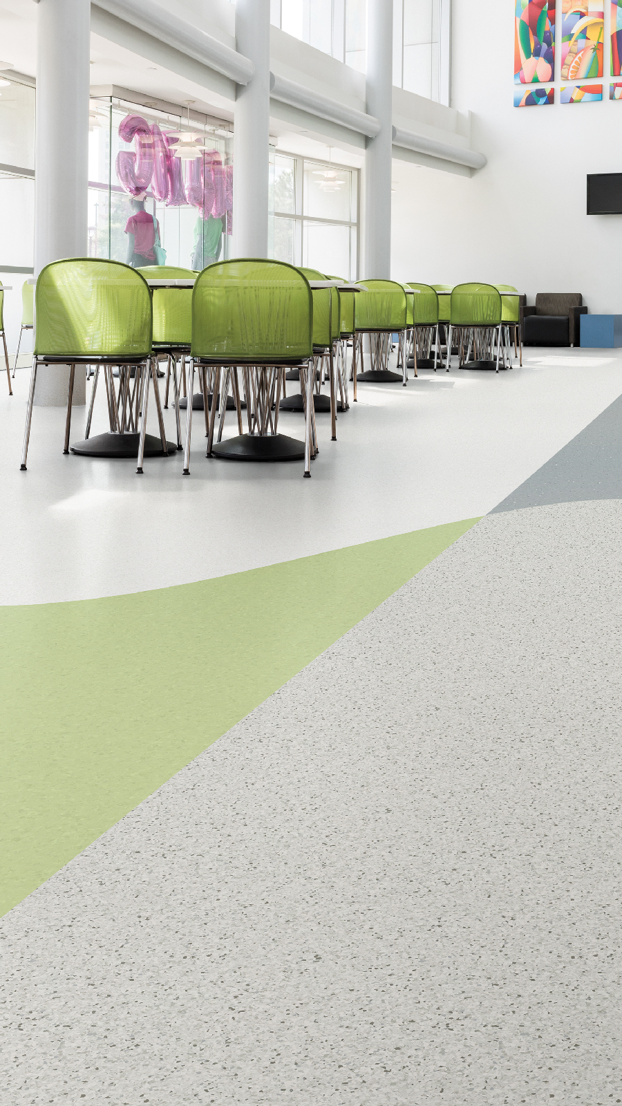 - „Tarkett“ produktai sumažina žingsnių ar stumdomų baldų garsą bendrosiose erdvėse, tokiose kaip koridoriai ar valgyklos.
