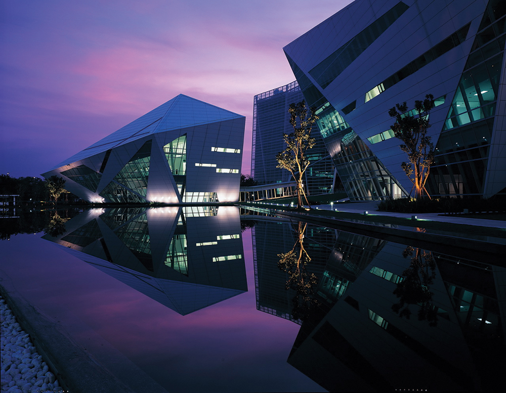 Betono bokštai turi išskirtinę banguotą tekstūrą, išlenktos fasado plokštės išlietos unikaliu horizontaliu raštu. Įvairių betono apdorojimo būdų rezultatas – statinys atrodo lyg būtų rankų darbo, žiestas iš šlapio molio. Šis pastatas Azijoje suteikė nepaprastą galimybę permąstyti, kas yra tradicinis universiteto pastatas.