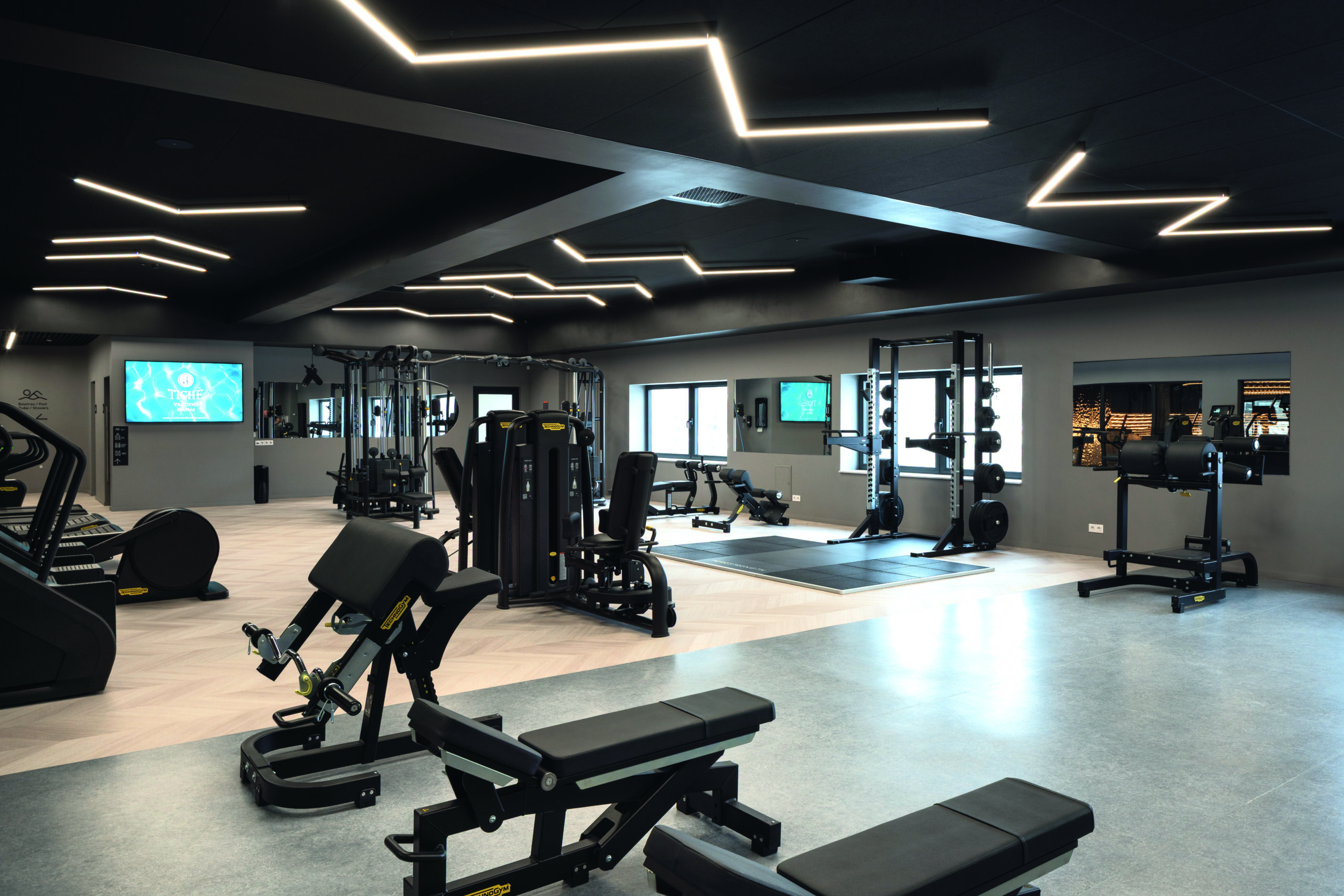 Baseino zonos sienos nudažytos atpalaiduojančią atmosferą kuriančia balta spalva. Sporto salės sienoms parinkta susikoncentruoti padedanti tamsiai pilka spalva, o persirengimo kambarių ir tualetų sienoms – tamsiai mėlyna spalva „Royal“ (M436).
