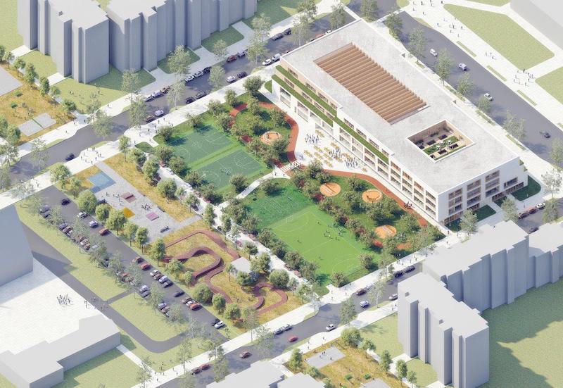 Būsimiesiems pastato naudotojams patraukli pasirodė projekto autorių mintis skatinti moksleivių judėjimą dviračiais net atšalus orams, o architektams pavyko suderinti automobilių vairuotojų pageidavimą išspręsti parkavimo vietų problemą (atsiras 30 papildomų vietų automobiliams) su jaunimo noru matyti kuo daugiau želdinių.