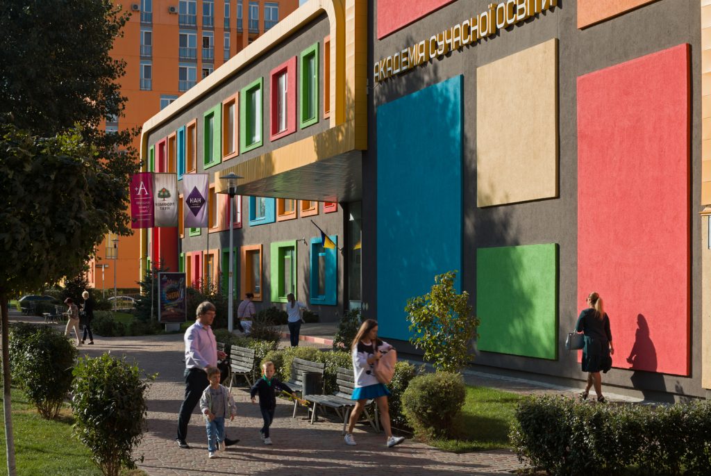 Buvusio pramoninio rajono pertvarkymas į gyvenamąjį rajoną niekada nėra lengvas uždavinys. Kijeve griežto kraštovaizdžio transformacija įvyko pasitelkus spalvas.