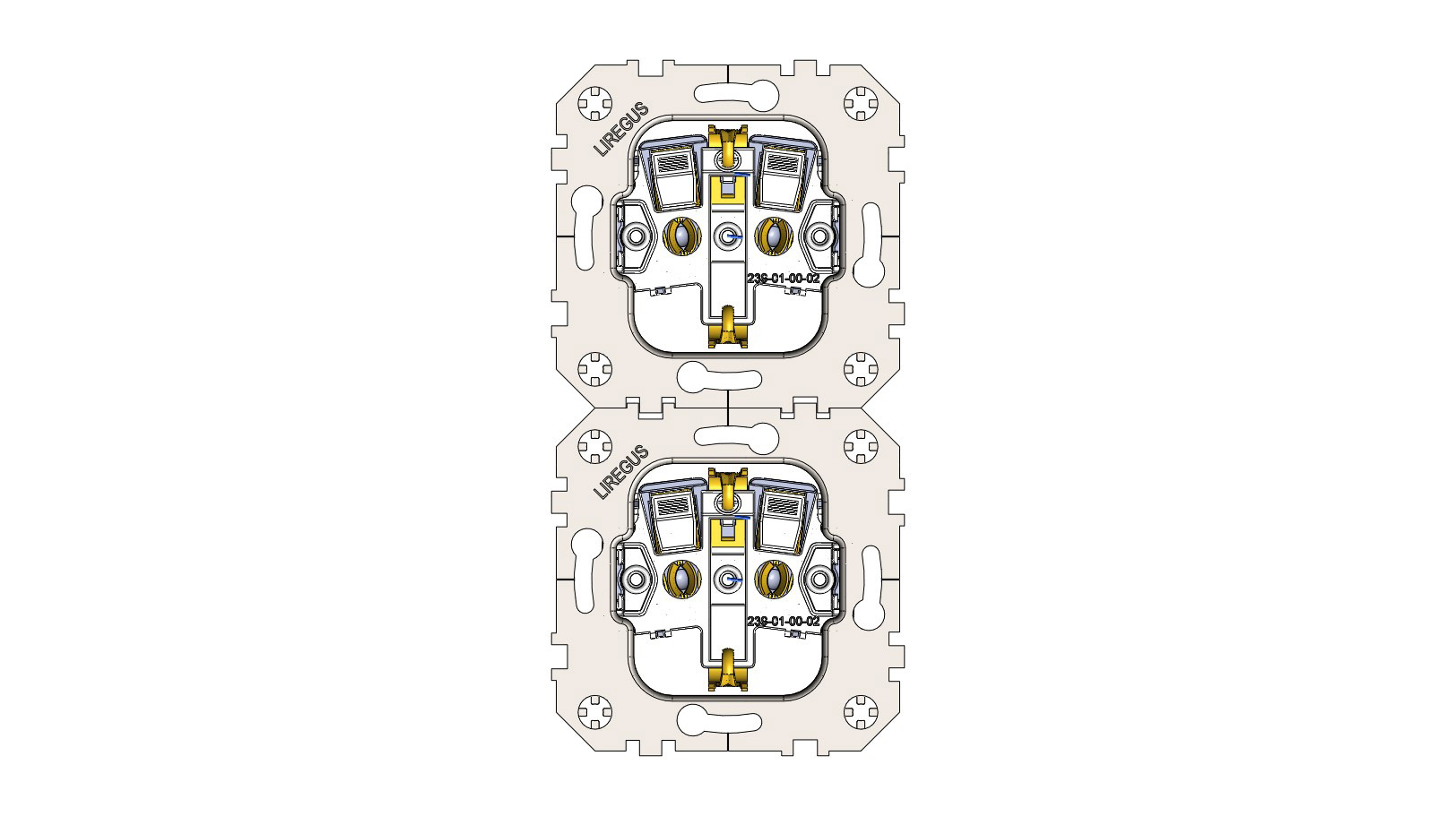 Dvigubi aštrūs paspaudimo spyriai greitai įsirėžia į instaliacinę dėžutę, o esant reikalui atsileidžia, sugrįždami į pradinę padėtį. Senesnėje modifikacijoje buvO plokštelĖS, dabar jos pakeistos dviem atramomis, kurios ne tik stipriau, bet ir dvigubai greičiau įsirėžia į montavimo dėžutę.