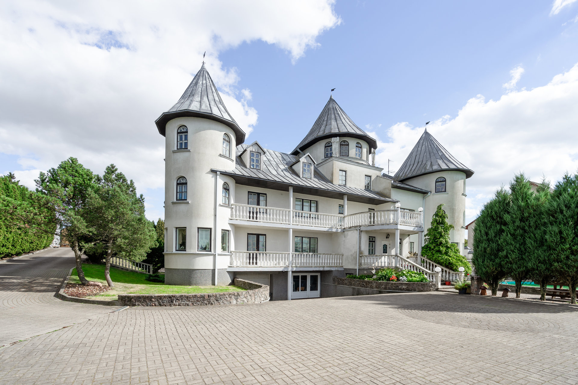 44 arų sklype esantis 644 kv. m gyvenamasis namas su 10 kambarių. Sklype taip pat stovi pramogų-laisvalaikio namas, kurio plotas siekia 134 kv. m, jame yra biliardinė su baru, sporto salytė, stalo teniso stalas ir pirtis su baseinu.