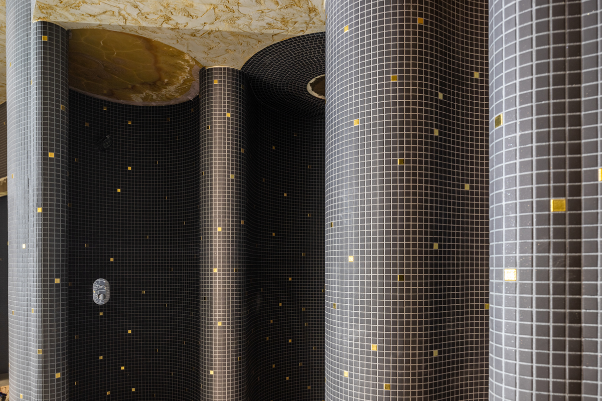 SPA zonoje rūsyje pagrindinė dizaino idėja – erdvė oloje žemiau žemės paviršiaus, oloje. Sienoms dekoruoti dizaineris pasirinko juodą bazaltą, inkrustuotą šviečiančiomis onikso juostomis. Lubos pilkai auksinio atspalvio, kuris suteikia „olai“ erdvės įspūdį. Virš sūkurinės vonios ir dušų įrengtos šviečiančios onikso lubos, auksiniai inkrustavimai – „aukso gyslos ir grynuoliai“ olos sienose – viskas skirta visiškai atsipalaiduoti SPA zonoje.