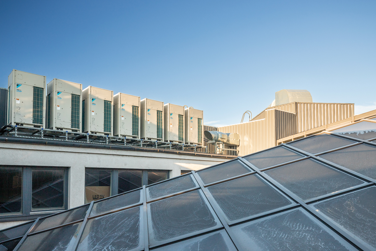 DAIKIN 3-vamzdė VRV sistema gali vienu metu užtikrinti tiek šildymo, tiek šaldymo poreikius skirtingose patalpose. Tai yra aktualu šiame pastate, nes jo fasadas yra orientuotas į visas pasaulio šalis. Šiai sistemai veikiant vėsinimo režimu, perteklinė šiluma nėra išmetama tiesiogiai į lauką, o panaudojama karštam vandeniui ruošti. VRV sistemos išoriniai blokai parenkami taip, kad veikiant šildymo režimu visas karšto vandens poreikis yra patenkinamas.