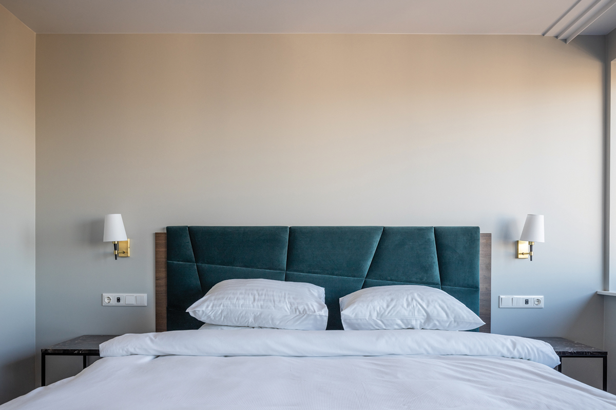 Kad kambariams būtų suteikta daugiau individualumo, naudoti įvairaus stiliaus lovų galvūgaliai, sukurti specialiai šio viešbučio erdvėms, ir mediniai porėmių apvadai. Prabangesnio stiliaus kambariuose lovų segmentuotos detalės apkantuotos mediena, kituose – lovų galvūgalis sumontuotas aukštas iki lubų, o čiužinio matmenys siekia 200 x 200 cm.