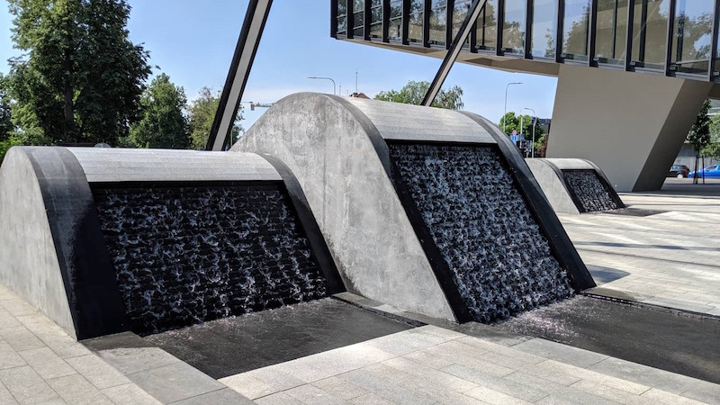 Kiekvienas iš pradėjusių veikti fontanų yra skirtingo aukščio ir statumo, turi po du laiptuotus ir skirtingu kampu įrengtus paviršius, todėl vanduo kaskadomis teka nevienodu greičiu. Šių fontanų architektūrinius ir dizaino sprendinius sukūrė „Martha Schwartz Partners“ biuras Londone, o techninius vandens tiekimo, cirkuliavimo ir valymo sprendinius įgyvendino Lietuvos kompanija.