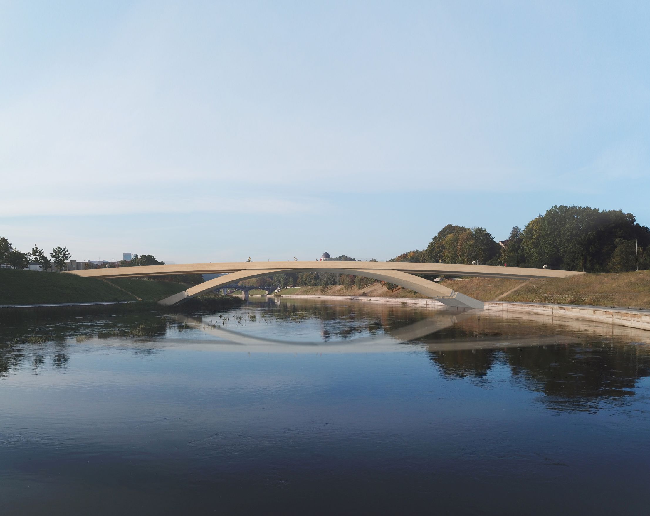„Tai bus arkinės konstrukcijos tiltas. Visas tilto konstruktyvas – arkos ir perdanga – bus iš medžio. Tik pamatai bus gelžbetoniniai, o medinės konstrukcijos bus sujungtos metalinėmis įdėtinėmis detalėmis. Savo forma statinys bus panašus į Mindaugo tiltą, tad tai bus gražus abu upės krantus sujungiantis akcentas. Nepaisant fakto, jog tilto konstrukcija medinė, jis bus tvirtas ir ilgaamžis. Kadangi tiltas skirtas tik pėstiesiems ir dviratininkams, apkrovos nebus didelės, tad naujuoju tiltu džiaugsimės tikrai ilgai”, – teigia T. Daškevičius.