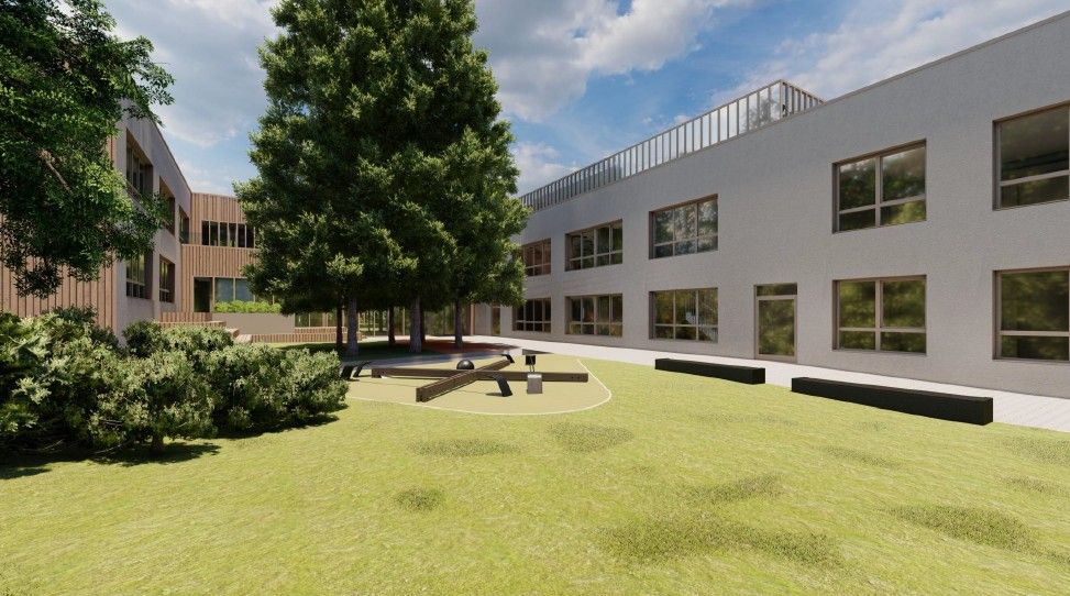 Įgyvendinant projektą bus modernizuojamas esamas mokslo paskirties pastatas ir sutvarkyta visa sklypo aplinka. Teritorijoje bus įrengtos naujos aktyvaus poilsio, žaidimų ir sporto zonos, lauko klasės bei multifunkcinė aikštė mokyklos ir bendruomenės renginiams. Sklypo vakarinėje dalyje, prie pagrindinio įėjimo, projektuojama kiemo dalis su suoliukais, vėliavų stiebais ir trinkelių takais. Reljefas keičiamas minimaliai, siekiant išsaugoti esamus medžius ir želdinius.