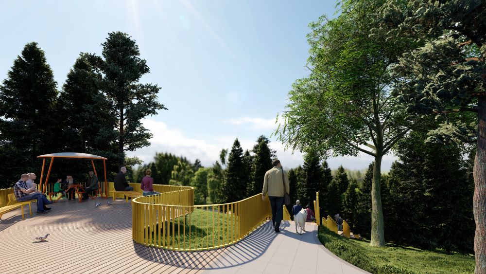 Naujoji erdvė ne tik patenkins vietos gyventojų susisiekimo ir poilsio poreikius, bet ir stebins išskirtine – ateivių tematika. Natūralų, miškelio apsuptą reljefą papildys vaikų žaidimų aikštelė su ateivių motyvais, geltonos spalvos akcentai, žaisminga ateivio skulptūra. Tai ne tik džiugins vaikus, bet ir taps vizualiniu simboliu visai bendruomenei.