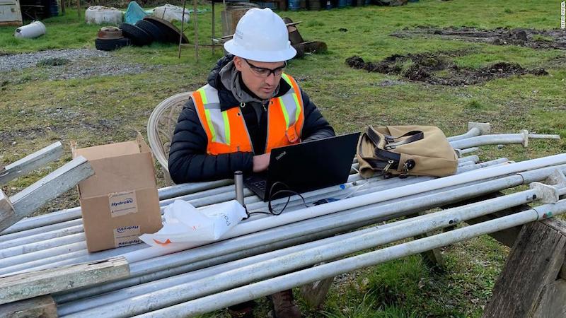 Lanas Giatti yra CBS filialo Los Andžele vyriausiasis redaktorius ir sako, kad perėjimas prie nuotolinio darbo iki šiol vyko gana sklandžiai. Bet jis kartais turėjo improvizuoti. Jo stovintis stalas yra kūdikio kėdutė.