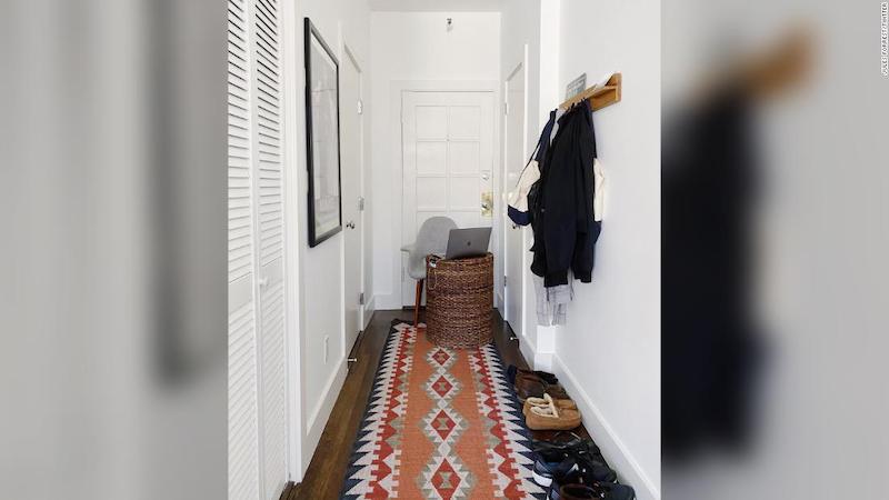 Jules Forrest gyvena studijo tipo bute San Fransiske su savo partnere. Ji pastatė kėdę priešais lauko duris. Jos stalas – skalbinių dėžė.