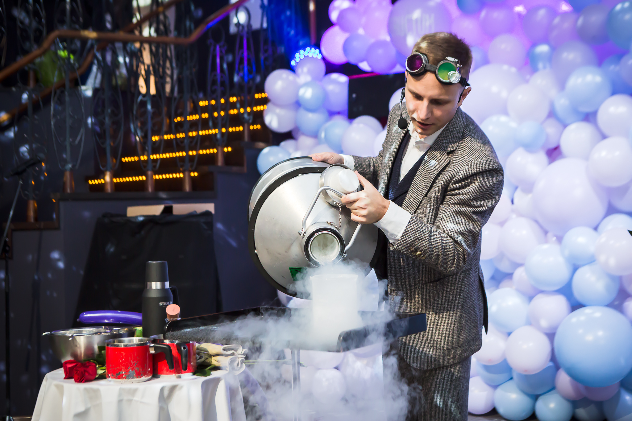 Po nuotaikingo ir logiškai nepaaiškinamo iliuzionisto pasirodymo vakaro svečiams kvapą gniaužė oro akrobatės Karolinos Stanionytės triukai pakilus lanke virš scenos, dainininkė Justė Kraujalytė, originalus mokslinis šou „Reakcijos“, kurio metu dužo skystame azote užšaldytos rožės, o vakaro svečiai ragavo -192° C temperatūros medžiagoje „išvirtus“ saldžius kukurūzus.